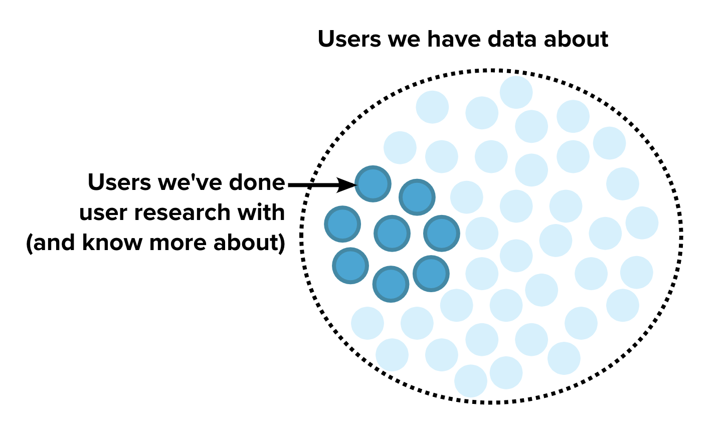 User research is used along with data. Think of data as knowing a little bit about most of the people, and user research as knowing a lot more about a few of those people.