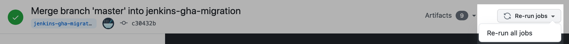 In either the workflow statuses view for a commit or the summary page of a workflow run, you may cancel or re-run a workflow.
